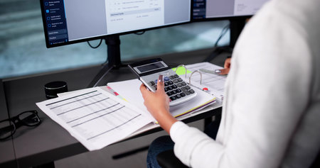 Expert Accountant Conducts Comprehensive Financial Audit For Business Tax Purposes. Professional Woman