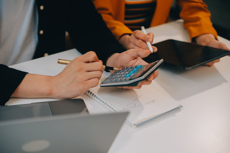 Accounting businesswomen are calculating income-expenditure and analyzing real estate investment data, Dedicated to the progress and growth of the company, Financial and tax systems concept.