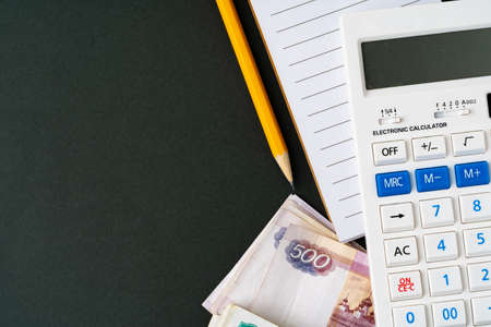 Cash money for home budget expenses. Calculation ideas for house loan, Savings for real estate, finance business payment investment for mortgage property, Agents-brokers calculate insurance on hand.