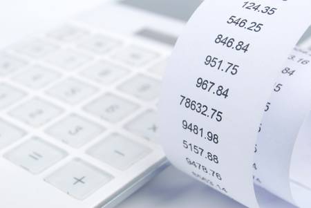 Close up of receipt paper and caculator, payment