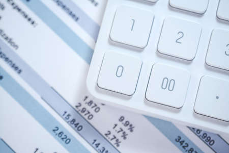 Business concept with accounting white calculator and financial data
