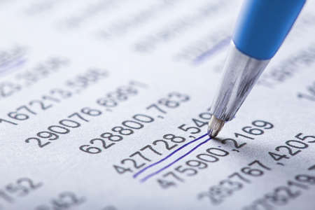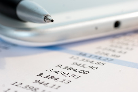 Business document Financial accounting and pen.