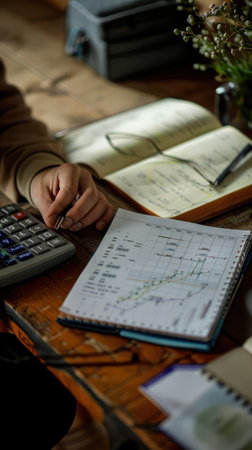 A close-up of a calculator and notebook filled with financial calculations, highlighting the strategic planning behind successful saving habits.