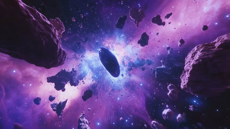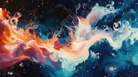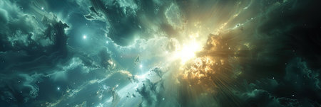 Abstract cosmic nebula with swirling clouds of gas and dust.