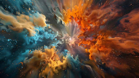 A stunning display of vibrant colors fills the canvas of the cosmos, depicting an explosive nebula with swirling gases and bright light emanating from the center, capturing the essence of space.