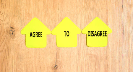 Agree to disagree symbol. Concept words Agree to disagree on beautiful yellow paper houses. Beautiful wooden background. Business and agree to disagree concept. Copy space.