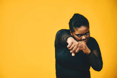 Black lives matter. Races fights. African caucasian male hands pointing finger isolated on dark. Ethnic conflict. Human harassment. No racism