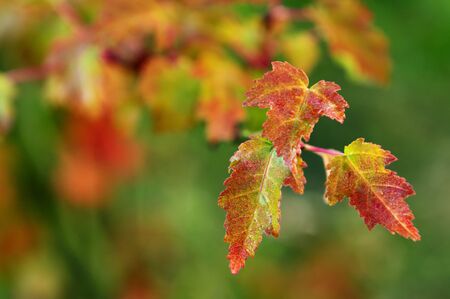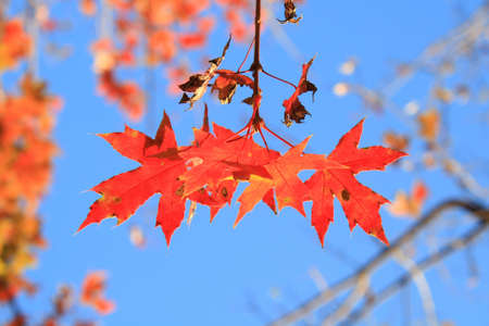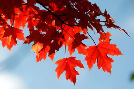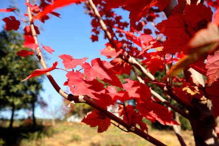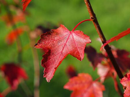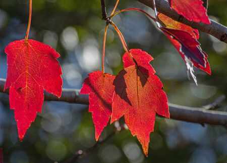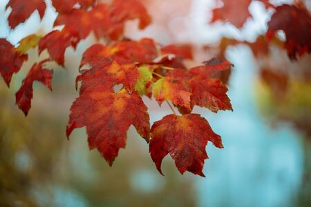 Close up of autumn red maple leaves