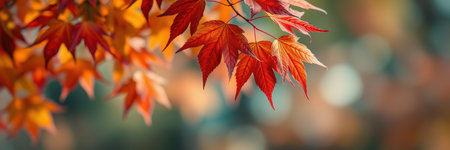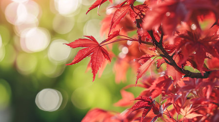 red autumn leaves on maple tree branch, created with generative ai