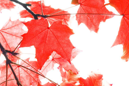 red fall or autumn leaves on a white background