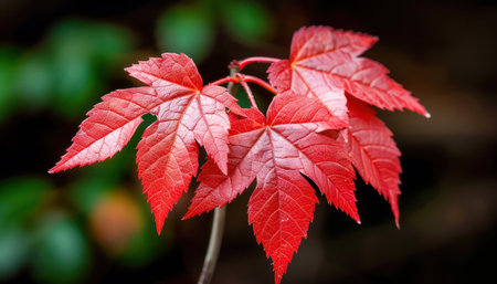A breathtaking close-up of vibrant red maple leaves, showcasing the beauty of autumn foliage The intricate details and rich color of the leaves are captured in stunning clarity, highlighting nature's artistry during this seasonal transformation A perfect image for capturing the essence of fall AI Generative