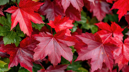 Explore this stunning close-up of vibrant red maple leaves, capturing the essence of autumn with rich colors and a beautiful natural design.