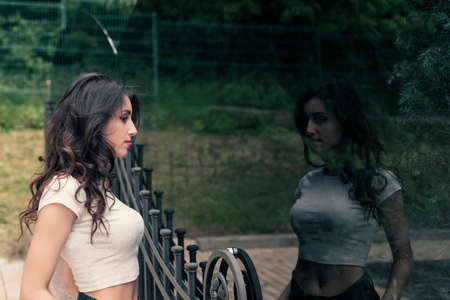 sad gorgeous woman looks away thinking about something. Close-up portrait
