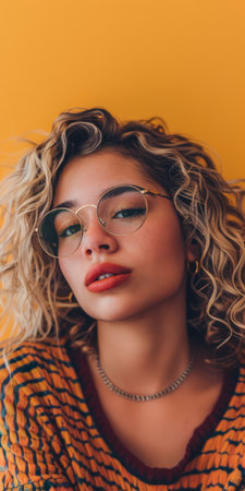 Portrait of a young beautiful girl with curly hair in a yellow jacket