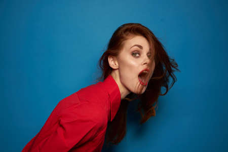 Woman Portrait Beautiful Teenager Young asian Woman isolated on blue background