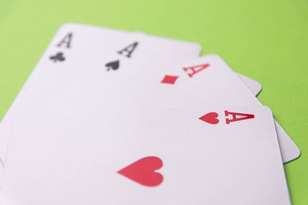 Four aces on green background. Concept of gambling risk