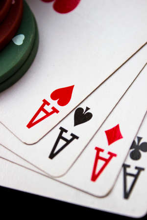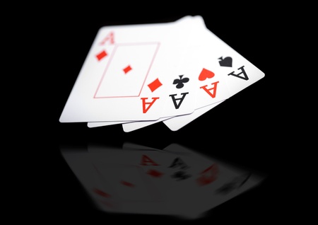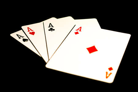 Playing Card Aces Close Up on black background.