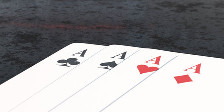 Four aces card game on dark concrete surface 3d render illustration