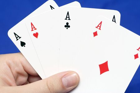 Four aces and dice on a classic blue background.