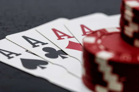poker, hand - pocket aces on colorful chips