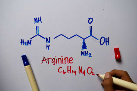 Arginine write on the white board. Structural chemical formula. Education concept