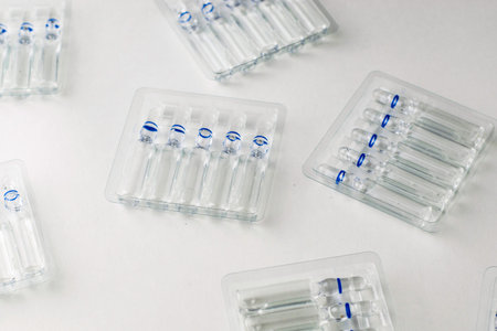 plastic transparent containers with glass ampoules on a white background. High quality photo