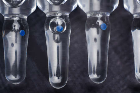Ampoules with medicine on a blue background.