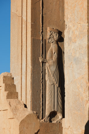 Ruins, statues and murals of ancient persian city of Persepolis in Iran. Most famous remnants of the ancient Persian empire.