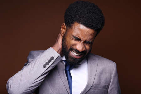 Portrait of Young Man having Neck Pain