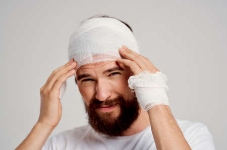 bearded man in a white t-shirt trauma health diagnosis isolated background