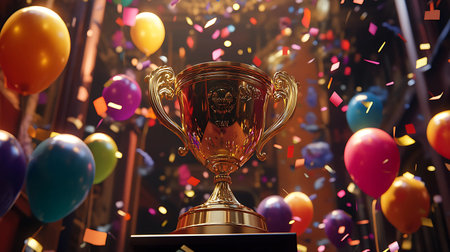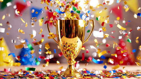 AI Generated. A golden trophy surrounded by colorful confetti