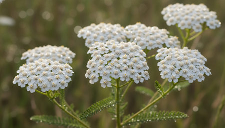 Close-up view of white milfoil flowers on a sunny day in the meadow