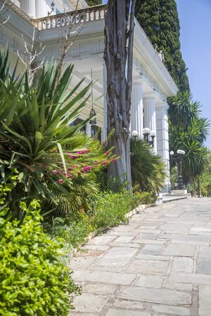 Achilleion palace, Corfu, Greece - August 24, 2018: Achilleion palace of Empress of Austria Elisabeth of Bavaria in Corfu island, Greece
