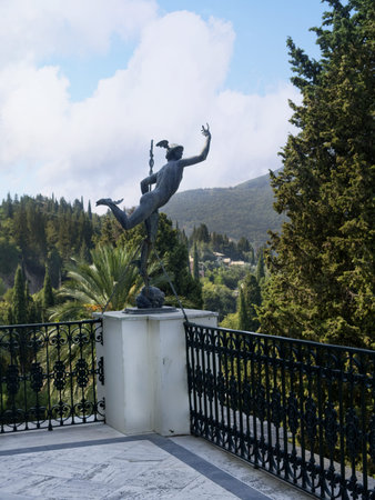 ACHILLEION PALACE, CORFU ISLAND, GREECE - SEP 07 2016: statue of the Greek hero Achilles