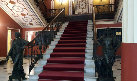 CORFU, GREECE- January 21, 2018: The main staircase in Achilleion palace of Empress of Austria Elisabeth of Bavaria, in Corfu island, Greece