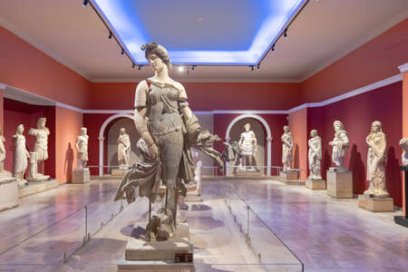 Antalya, Turkey - October 2021: Antalya Archeological Museum interior and exhibitions, one of Turkeys largest museums located in Antalya city in Turkey.