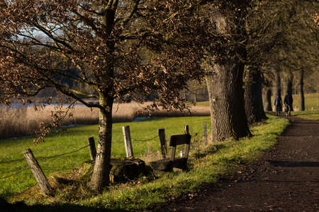 Ebersberg, Germany-March 10,2022 : Promenade along the Egglburger see (lake) along an alley of oaks in winter, a destination near Ebersberg, Upper Bavaria.