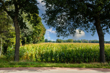 Corn field.Natural vegetable background. Close up, horizontal, nobody. Agriculture and harvesting concept.