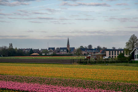 landscape view with colorful flowers background in Netherlands