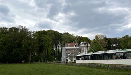 old dutch tram in a rural area near amsterdam in the netherlands