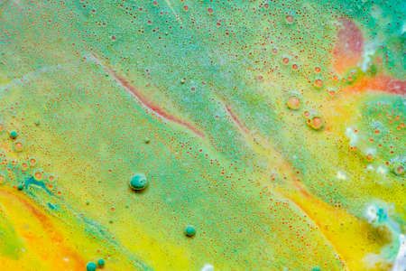Multicolored lines and spots on liquid surface. Abstract background made with fluid art technique. Trendy colorful backdrop. Fluid art