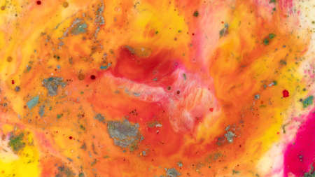 Abstract yellow-red background. Abstract paint ink, psychedelic background. Fluid art