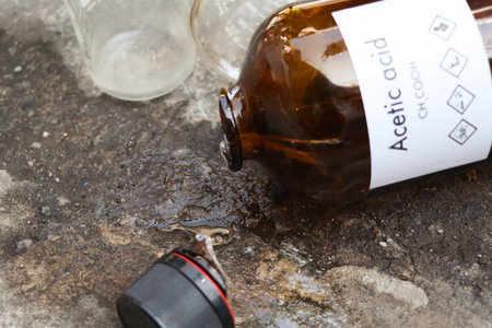 acetic acid are leaking on the floor, chemical in the laboratory and industry, Chemicals used in the analysis or raw materials for production