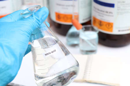 Nitric acid in glass, chemical in the laboratory and industry