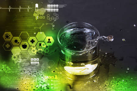 Glass laboratory apparatus with color water on the glass table