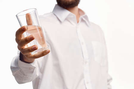 man in white shirt drinking water isolated background