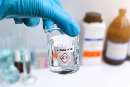sulfuric acid in glass, chemical in the laboratory and industry