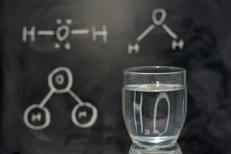 Different formulas of the water molecule, written with a chalk on the blackboard