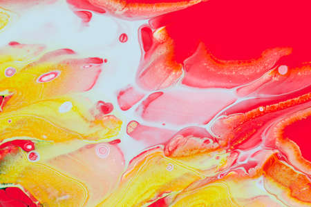 A macro shot of a creative background with abstract acrylic painted colorful patterns