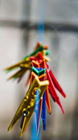 Colored clothes pegs on the move with the central focus.